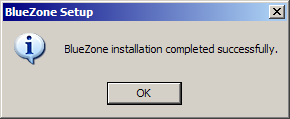Click the Finish button. The selected BlueZone files will be installed, the BlueZone Program Group will be created, desktop shortcuts will be created and a message box letting you know that the installation was completed successfully will appear.