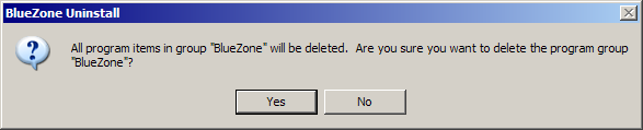 If you don't want to delete the BlueZone Program Group, then click the No button. If you want to delete the BlueZone Program Group, then click the Yes button.