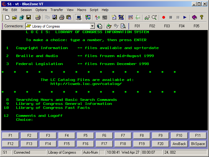 You should now be connected to your host. Note the word "Connected" on the BlueZone StatusBar.
