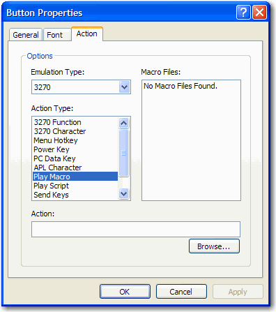 Instead, you must type the name of the VBA macro, with no file extension, that you want to assign to this button in the Action field.