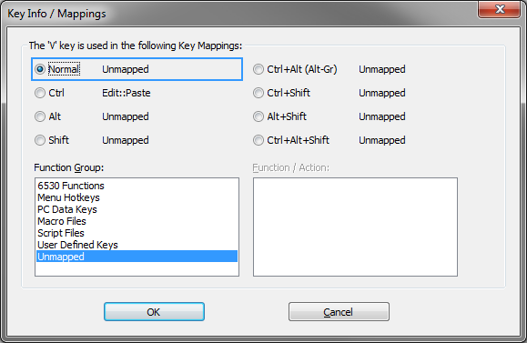 available for key mapping. The functions displayed are dependent
