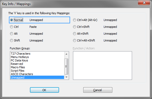 Ctrl key is mapped to the Edit::PasteMenu Hotkeys. All of the other
