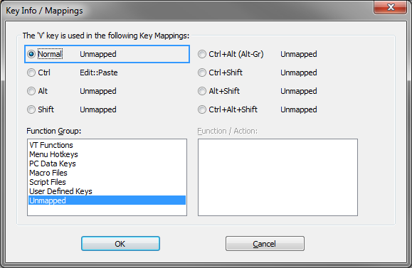 Ctrl key is mapped to the Edit::PasteMenu Hotkeys. All of the other