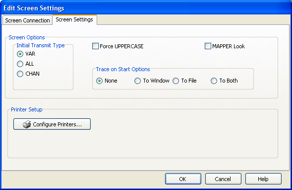 the UTS configuration screens. It contains the Screen Connection and Screen